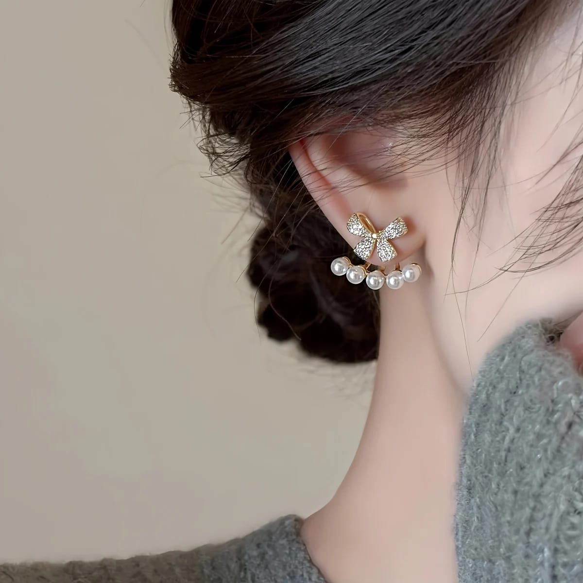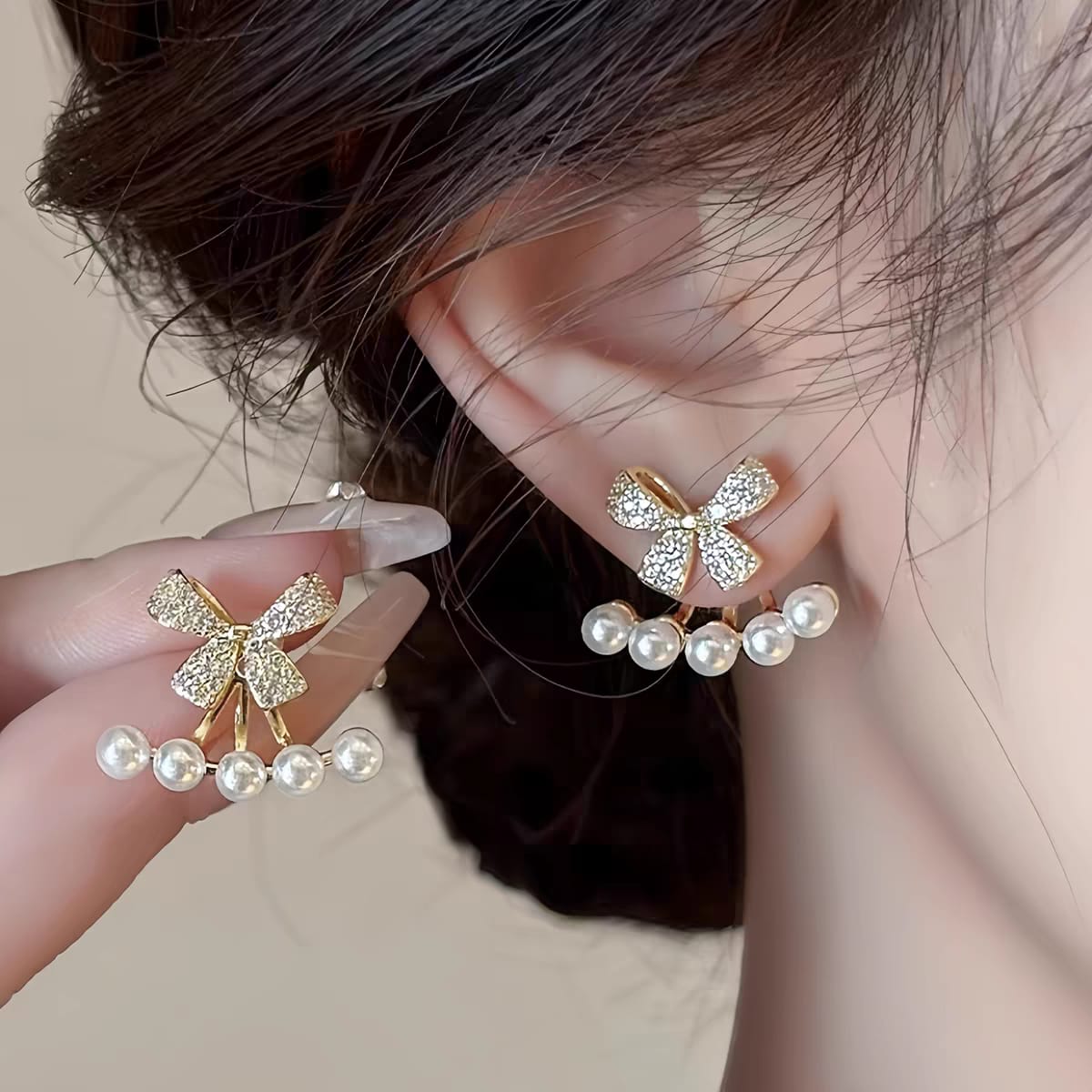 A stunning Korean 3D bow stud earrings designed to add a sparkling statement to your everyday or occasion outfits.